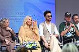 XXXIV Международный фестиваль искусств "Славянский базар" в Витебске. Пресс-конференция членов жюри по итогам первого конкурсного дня. Слева направо: певица Этери Бериашвили, председатель жюри конкурса молодых исполнителей, певица Таисия Повалий, певец Александр Панайотов и певец, солист группы "JOY" (Австрия) Энди (Андреас) Швейцер во время пресс-конференции.