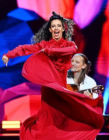 XXXIV Международный фестиваль искусств "Славянский базар". Концерт торжественного закрытия фестиваля. Танцовщица музыкального проекта Etno Flamenco Марина Коробко во время концерта.