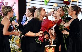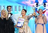 XXXIV Международный фестиваль искусств "Славянский базар". Торжественная церемония закрытия фестиваля. Певица из Казахстана Алмагуль Батталиева (в центре) во время церемонии награждения.