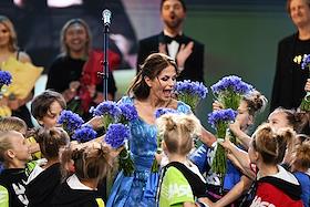 XXXIV Международный фестиваль искусств "Славянский базар". Концерт торжественного закрытия фестиваля. Певица Таисия Повалий во время концерта.