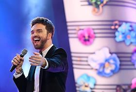 XXXIV Международный фестиваль искусств "Славянский базар". Концерт торжественного закрытия фестиваля. Молдавский певец Михаил Назарой во время концерта.