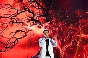 XXXIV Международный фестиваль искусств "Славянский базар". Концерт торжественного закрытия фестиваля. Певец Эрик Ахметов во время концерта.