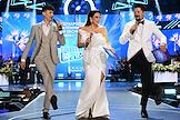 XXXIV Международный фестиваль искусств "Славянский базар". Концерт торжественного закрытия фестиваля. Слева направо: певцы Алексей Воробьев, Доменико Барьера (Италия) и Ольга Бузова во время концерта.
