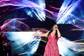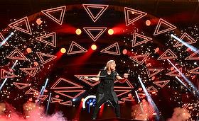 XXXIV Международный фестиваль искусств "Славянский базар". Концерт торжественного закрытия фестиваля. Солистка группы Reflex Ирина Нельсон во время концерта.