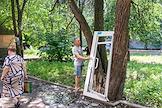 Последствия попадания беспилотного летательного аппарата (БПЛА) на жилой район города. Выбитое окно дома.