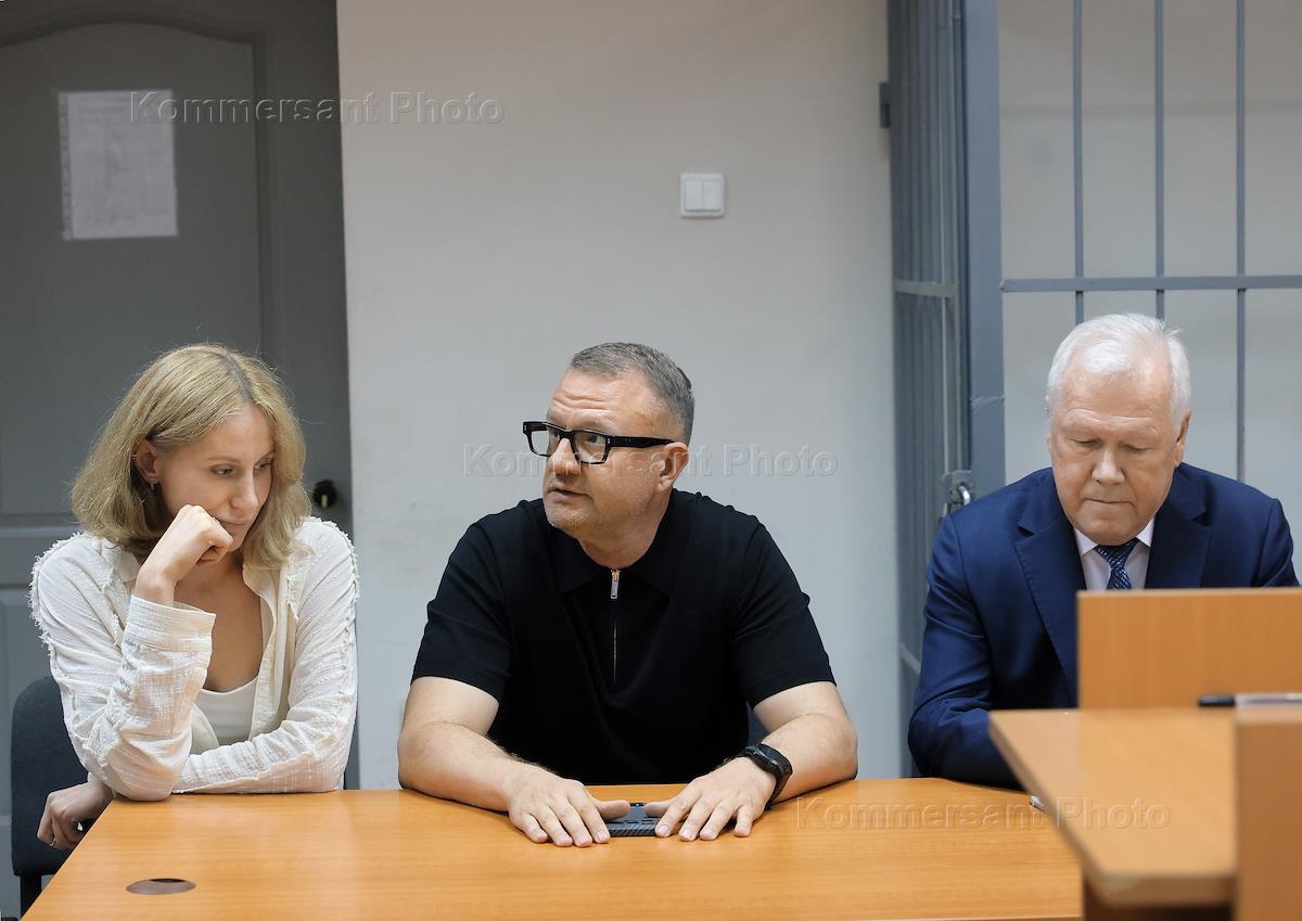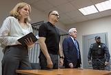 Бывший директор "Екатеринбург-Экспо" Игорь Данилов (в центре), обвиняемый в злоупотреблении должностными полномочиями, во время заседания Ленинского районного суда.