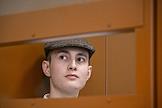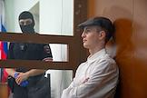 Судебное заседание по делу бывшего российского военнослужащего Антона Хожаева, обвиняемого в приготовлении к преступлению, государственной измене, дезертирстве, отмывании денег и участии в деятельности террористической организации, во Втором западном окружном военном суде. Бывший российский военнослужащий Антон Хожаев во время заседания.