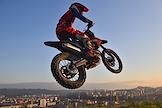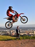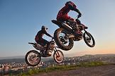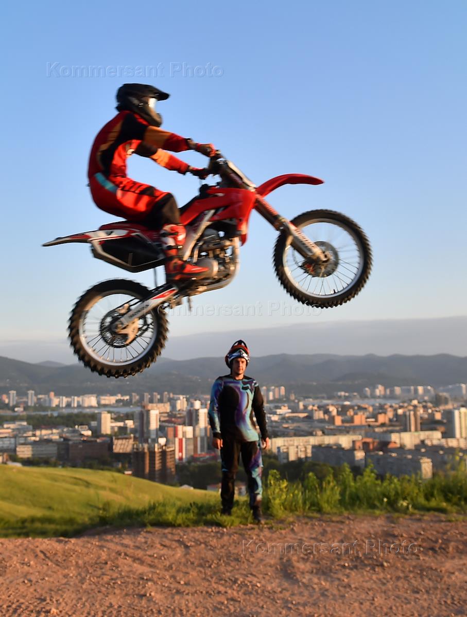 Тренировка по прыжкам на трамплинах эндуро мотоциклистов в Красноярске. Жанровая фотография.