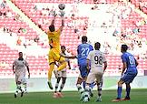 Мир Российская Премьер-Лига (РПЛ) 2025/2026. 1-й тур. Матч между командами "Пари Нижний Новгород" (Нижний Новгород) - "Краснодар" (Краснодар) на стадионе "Ак Барс Арена". Вратарь команды "Пари Нижний Новгород" Никита Медведев во время матча.