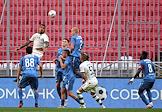 Мир Российская Премьер-Лига (РПЛ) 2025/2026. 1-й тур. Матч между командами "Пари Нижний Новгород" (Нижний Новгород) - "Краснодар" (Краснодар) на стадионе "Ак Барс Арена". Игрок команды "Краснодар" Александр Черников (слева) и игрок команды "Пари Нижний Новгород" Мамаду Майга (справа) во время матча.