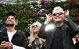 Премьерный показ клипа SHAMAN (Ярослава Дронова) на песню "Прямо по сердцу", написанную для международного музыкального конкурса "Интервидение", на медиафасаде здания на Новом Арбате. Глава Лиги безопасного интернета Екатерина Мизулина (в центре) и певец SHAMAN (Ярослав Дронов) (слева) во время показа.