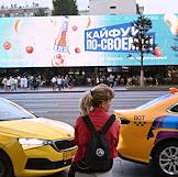 Премьерный показ клипа SHAMAN (Ярослава Дронова) на песню "Прямо по сердцу", написанную для международного музыкального конкурса "Интервидение", на медиафасаде здания на Новом Арбате. Реклама безалкогольного пивного напитка Doctor Diesel на медиафасаде.