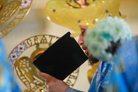 Праздник явления иконы Пресвятой Богородицы во граде Казани. Божественная литургия после Крестного хода с Казанской иконой Божией Матери. во время богослужения. Священнослужители во время богослужения.