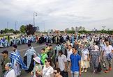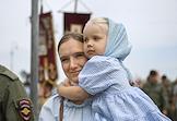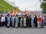 Праздник явления иконы Пресвятой Богородицы во граде Казани. Крестный ход с Казанской иконой Божией Матери из Благовещенского собора Кремля до Казанского Богородицкого мужского монастыря. Верующие во время Крестного хода.