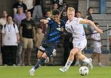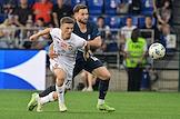 Мир Российская Премьер-Лига (РПЛ) 2025/2026. 1-й тур. Матч между командами "Оренбург" (Оренбург) - ЦСКА (Москва) на стадионе "Газовик". Игрок команды "Оренбург" Эмирджан Гюрлюк (справа) и игрок команды ЦСКА Матвей Лукин (слева) во время матча.