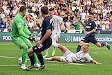 Мир Российская Премьер-Лига (РПЛ) 2025/2026. 1-й тур. Матч между командами "Оренбург" (Оренбург) - ЦСКА (Москва) на стадионе "Газовик". Игрок команды "Оренбург" Хорди Томпсон (слева) и игрок команды ЦСКА Матвей Кисляк (справа) во время матча.