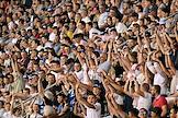 Мир Российская Премьер-Лига (РПЛ) 2025/2026. 1-й тур. Матч между командами "Оренбург" (Оренбург) - ЦСКА (Москва) на стадионе "Газовик". Болельщики на трибуне во время матча.
