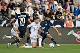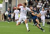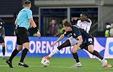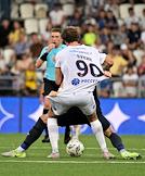 Мир Российская Премьер-Лига (РПЛ) 2025/2026. 1-й тур. Матч между командами "Оренбург" (Оренбург) - ЦСКА (Москва) на стадионе "Газовик". Игроки команды "Оренбург" Ираклий Квеквескири (в центре) и Владислав Камилов (справа) во время матча.