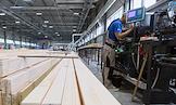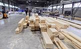 Работа деревообрабатывающего цеха ООО "Форами", выпускающего сборные дома. Цех разпила материалов.