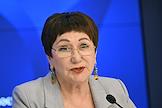 Пресс-конференция председателя Комитета Совета Федерации (СФ) России по социальной политике Елены Перминовой по итогам работы Комитета СФ России в период весенней сессии 2024 года в МИА "Россия сегодня". Председатель Комитета СФ России по социальной политике, представитель в СФ России от исполнительного органа государственной власти Курганской области Елена Перминова во время пресс-конференции.