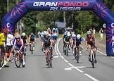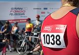 Серия шоссейных велосипедных заездов GranFondo на автодроме "Игора Драйв". Участник на финише.