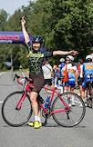 Серия шоссейных велосипедных заездов GranFondo на автодроме "Игора Драйв". Участница на финише.