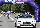 Серия шоссейных велосипедных заездов GranFondo на автодроме "Игора Драйв". Участники во время заезда.