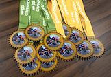 Серия шоссейных велосипедных заездов GranFondo на автодроме "Игора Драйв". Жанровая фотография. Медали участников.