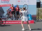 Серия шоссейных велосипедных заездов GranFondo на автодроме "Игора Драйв". Участники во время церемонии награждения.