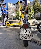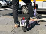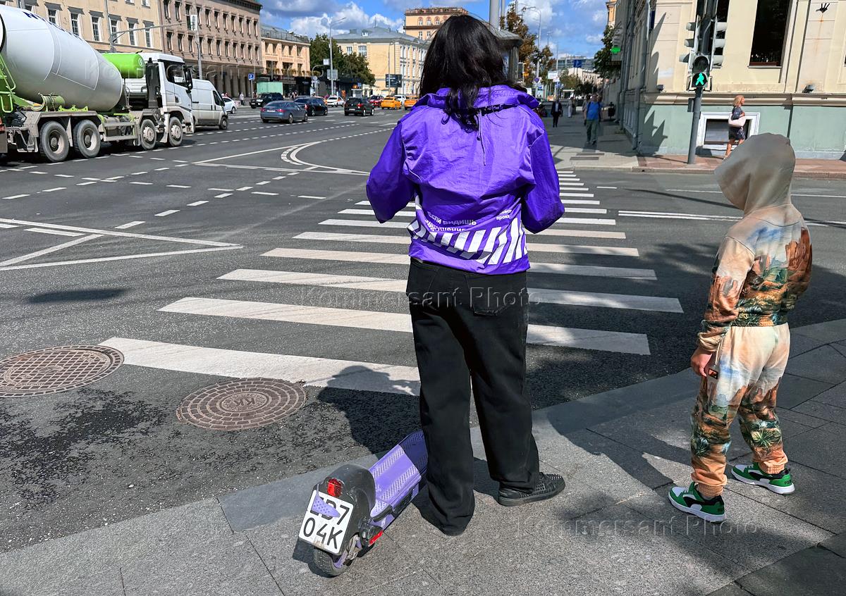 Жанровая фотография. Человек на электросамокате с закрытым номером.