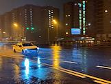 Виды ночной Москвы во время дождя. Жанровая фотография. Дорожное движение на улицах города.
