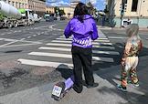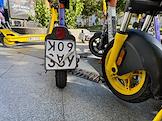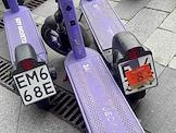 Жанровая фотография. Женщина на электросамокате с закрытым номером.