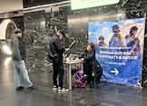 Жанровая фотография. Люди у информационного пункта "Военная служба по контракту в Москве" в московском метро.