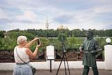 Виды Владимира. Жанровая фотография. Туристка на смотровой площадке у скульптуры "Художник".
