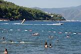 Жанровая фотография. Отдых на средиземноморском побережье Ичмелера. Люди купаются в море.