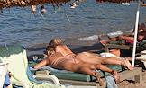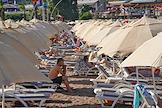 Жанровая фотография. Отдых на средиземноморском побережье Ичмелера. Люди на шезлонгах загорают на пляже.