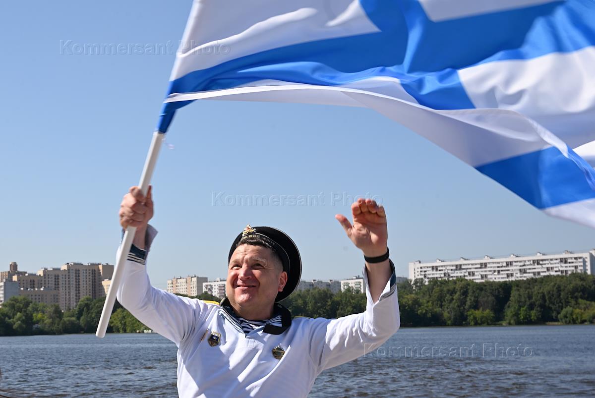 Празднование Дня Военно-Морского Флота (ВМФ) России на Северном речном вокзале. Жанровая фотография.