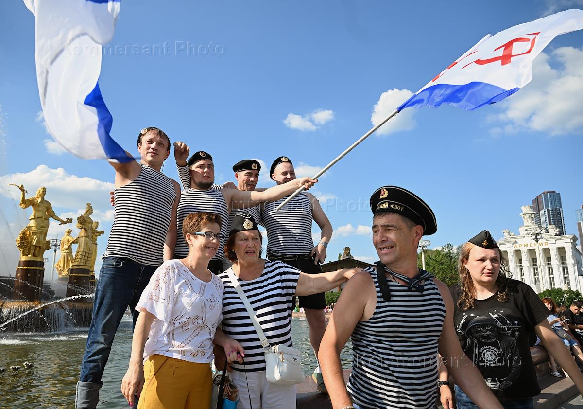 Празднование Дня Военно-Морского Флота (ВМФ) России на территории ВДНХ. Бывшие военнослужащие ВМФ России на праздновании.