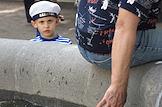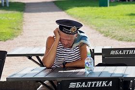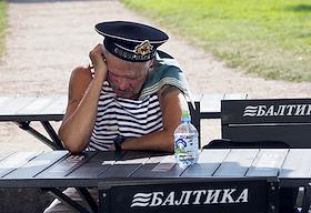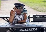 Празднование Дня Военно-Морского Флота (ВМФ) России в городе. Бывший военнослужащий ВМФ России во время празднования.