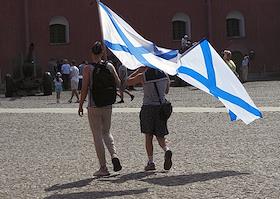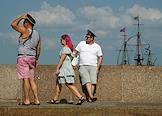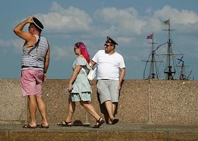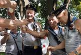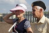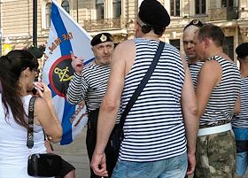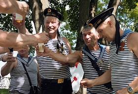 Празднование Дня Военно-Морского Флота (ВМФ) России в городе. Бывшие военнослужащие ВМФ России во время празднования.