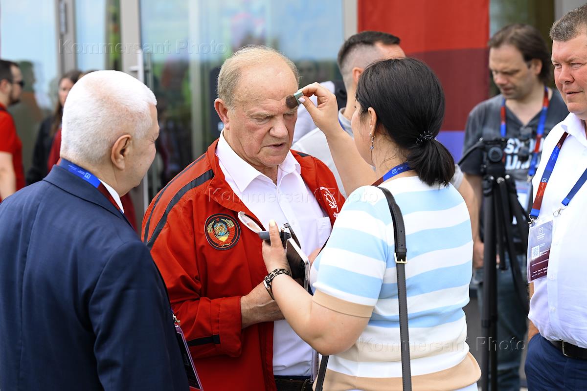 Всероссийский молодежный образовательный форум "Территория смыслов" в Мастерской управления "Сенеж". Слева направо: заместитель председателя комитета Государственной думы (ГД) России по защите семьи, вопросам отцовства, материнства и детства Мария Дробот, лидер КПРФ, руководитель фракции КПРФ в ГД России Геннадий Зюганов и первый заместитель комитета ГД России по безопасности и противодействию коррупции во время общения с участниками форума.