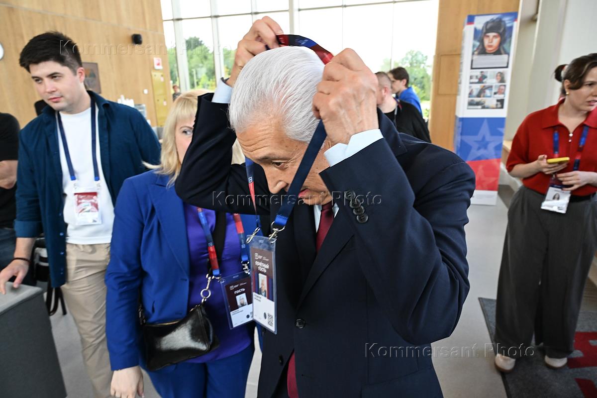 Всероссийский молодежный образовательный форум "Территория смыслов" в Мастерской управления "Сенеж". Жанровая фотография. Портрет председателя Либерально-демократической партии России (ЛДПР), руководителя фракции ЛДПР в Государственной думе России Леонида Слуцкого и сувенирная продукция ЛДПР.