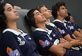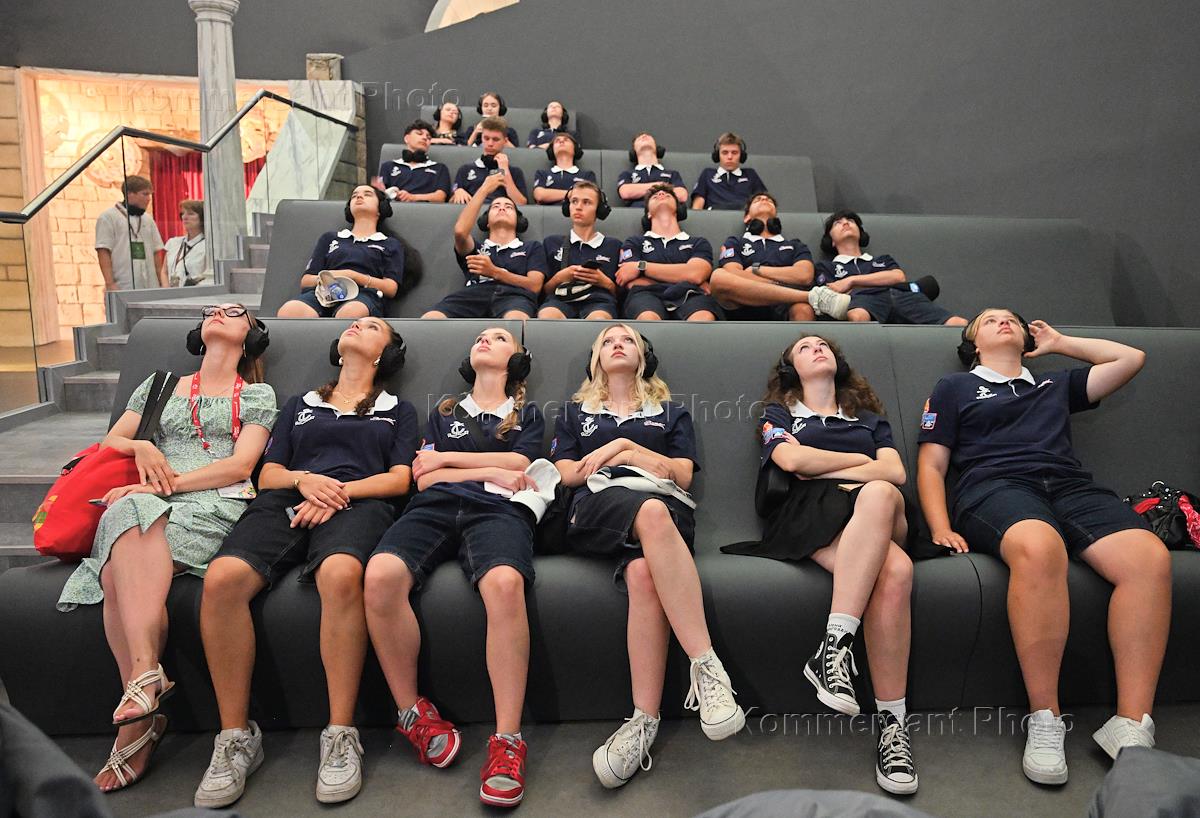 Церемония открытия первой части мультимедийной экспозиции "Крестный отец" в Музее Христианства на территории музейно-храмового комплекса "Новый Херсонес". Жанровая фотография. Экскурсионная группа на территории комплекса.