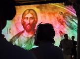 Церемония открытия первой части мультимедийной экспозиции "Крестный отец" в Музее Христианства на территории музейно-храмового комплекса "Новый Херсонес". Посетители музея во время церемонии.