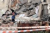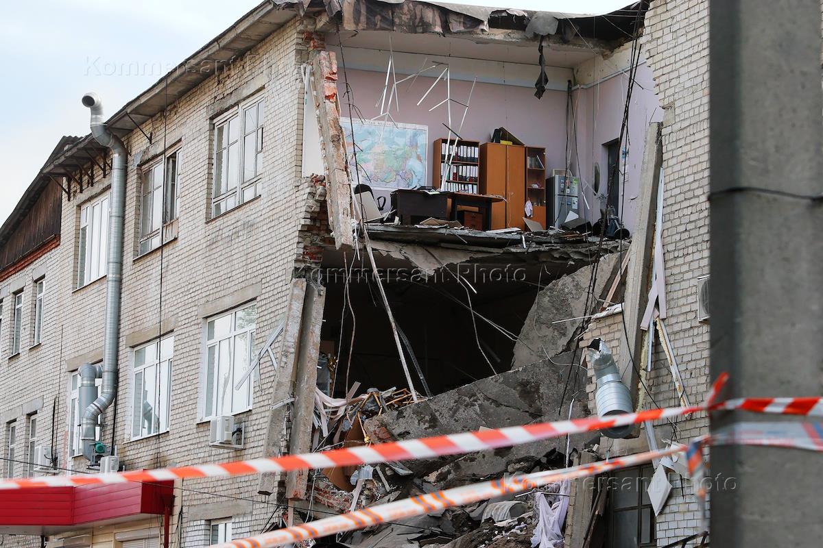 Последствия частичного обрушения офисного здания на улице Мартовской в микрорайоне Елизавет Чкаловского района.