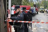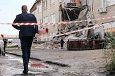 Последствия частичного обрушения офисного здания на улице Мартовской в микрорайоне Елизавет Чкаловского района. Сотрудники полиции на месте происшествия.