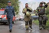 Последствия частичного обрушения офисного здания на улице Мартовской в микрорайоне Елизавет Чкаловского района. Спасатели МЧС на месте происшествия.