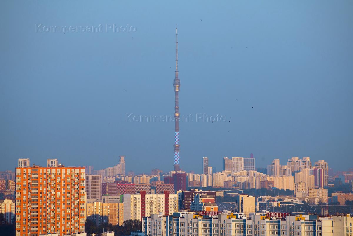 Жанровая фотография. Вид на жилые дома в Москве вечером. Останкинская телебашня.