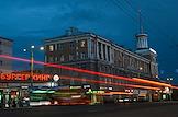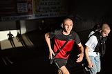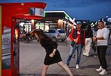 Виды вечернего Омска. Жанровая фотография. Горожане на перекрытой для транспорта улице Ленина. Девушка у силомера ROCKY BOXER.