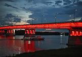 Виды вечернего Омска. Ленинградский мост через реку Иртыш.